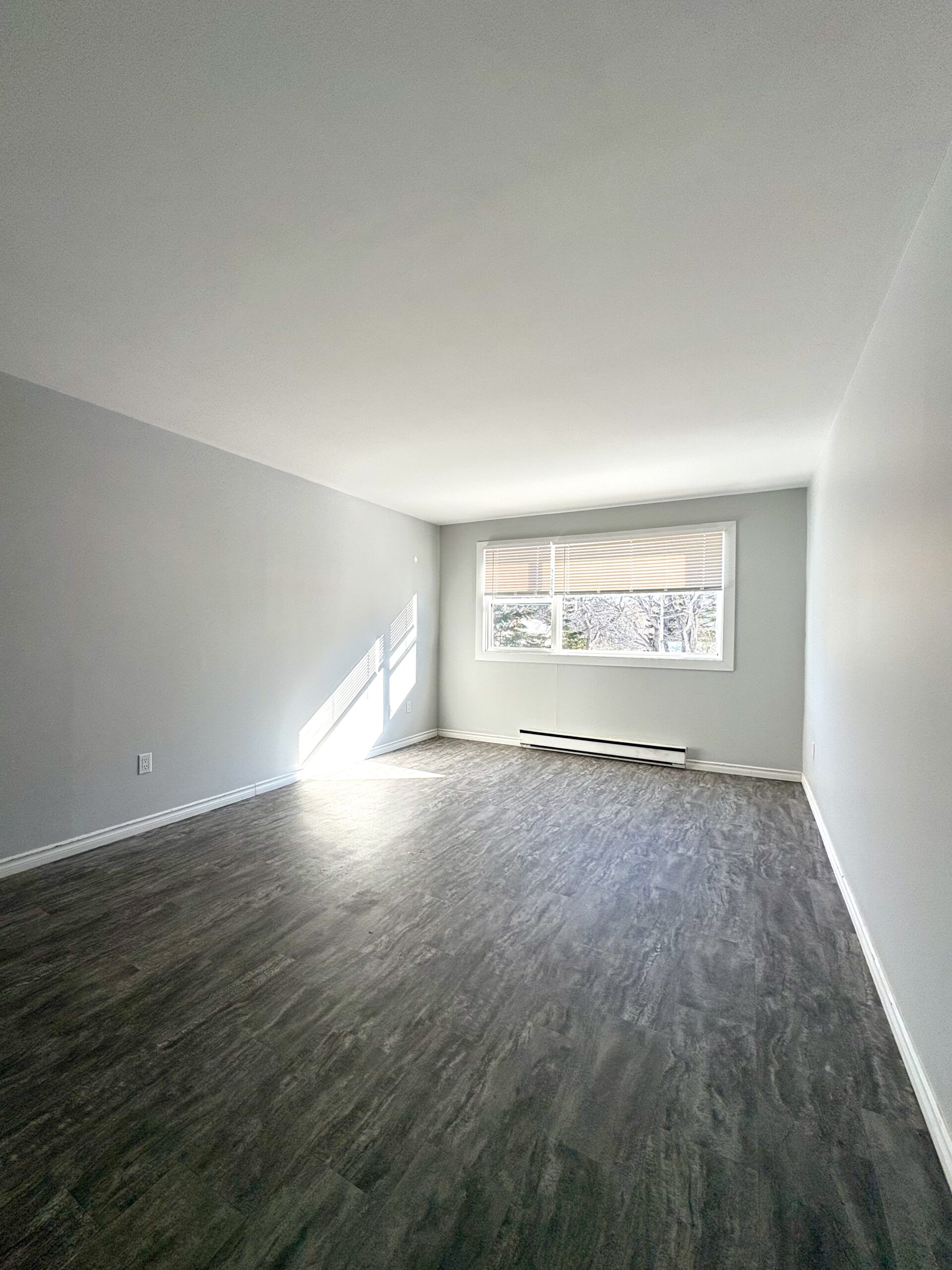 Rent covers water, one dedicated parking space, lawn care, snow removal, and cleaning of common areas. You only pay for power! There are laundry facilities in the building for your convenience.